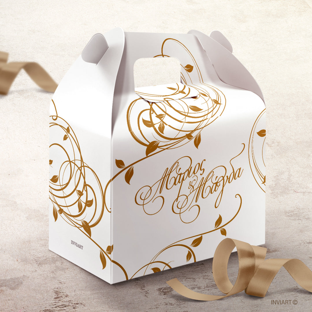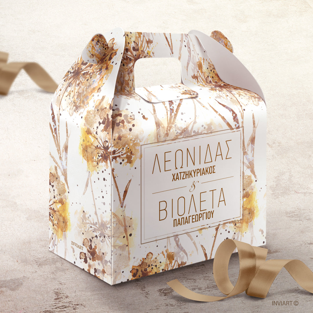 Μπορείτε να τα γεμίσετε με κουφέτα, γλυκίσματα ή αλμυρές λυχουδιές, μικρά δώρα ή συμβολικά αντικείμενα. Τα κουτιά διατίθενται σε μοντέρνα σχέδια, με θεματικά prints, floral, rustic ή minimal, και συνδυάζονται τέλεια με casual γάμους, νησιώτικους ή και boho concept.