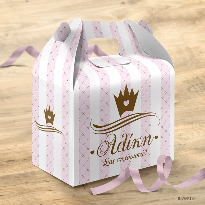 Είναι χάρτινα κουτιά με χερούλι, ιδανικά για να τοποθετήσετε κεράσματα, μικρά δώρα ή προσωπικά αντικείμενα για τους μικρούς και μεγάλους καλεσμένους σας.