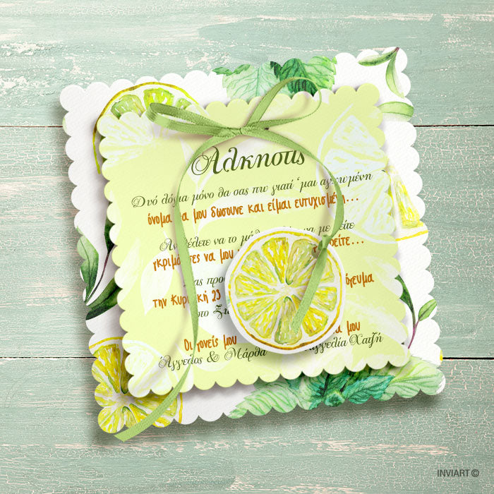 Χειροποίητα & ψηφιακά προσκλητήρια βάπτισης λεμονιού – μεσογειακή φρεσκάδα