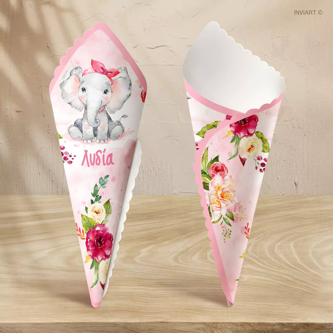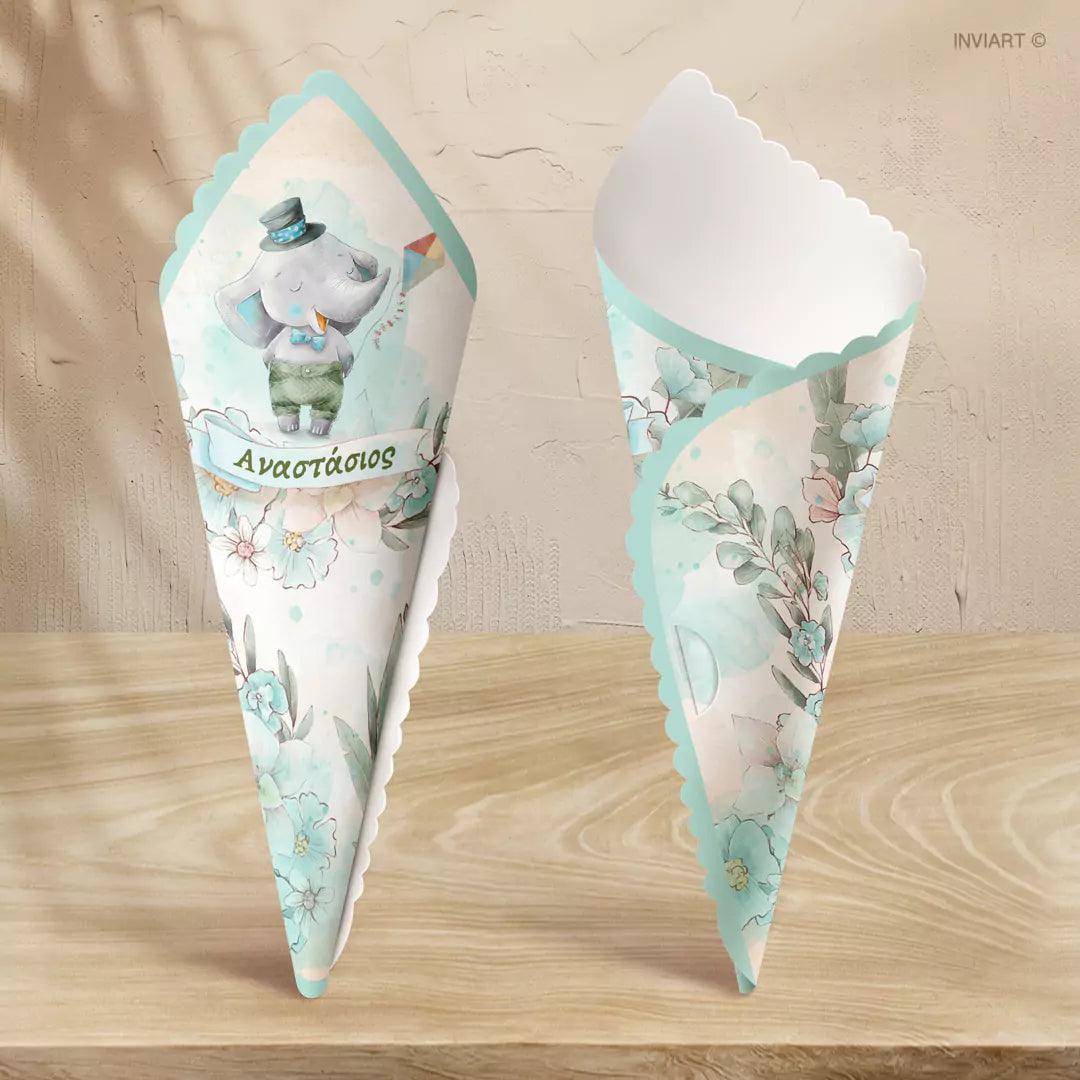Με μεγάλη ποικιλία σε θέματα όπως ζώα του δάσους, φεγγάρια και αστέρια, floral, jungle ή ναυτικό, κάθε χωνάκι μπορεί να ταιριάξει αρμονικά με το προσκλητήριο και τη γενικότερη διακόσμηση του event. Η δυνατότητα εκτύπωσης του ονόματος του παιδιού ή της ημερομηνίας της βάπτισης τα καθιστά ακόμα πιο ξεχωριστά.