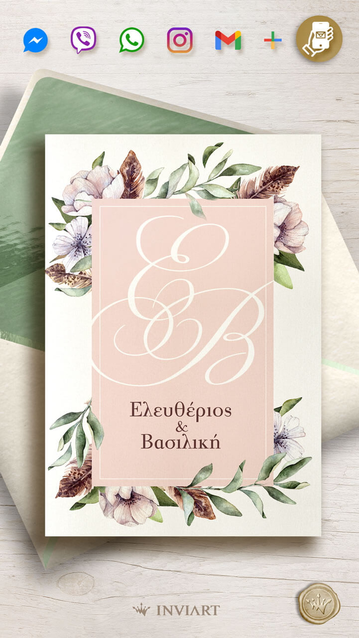 Ηλεκτρονικό προσκλητήριο γάμου watercolor λουλούδια