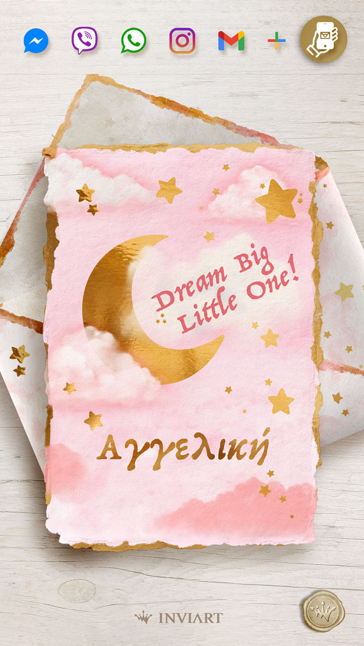 Ηλεκτρονικό Προσκλητήριο Βάπτισης Φεγγάρι - Αστέρια Κορίτσι 🎀