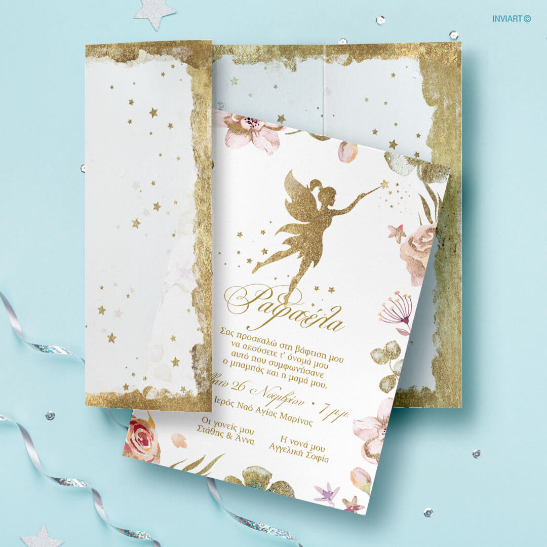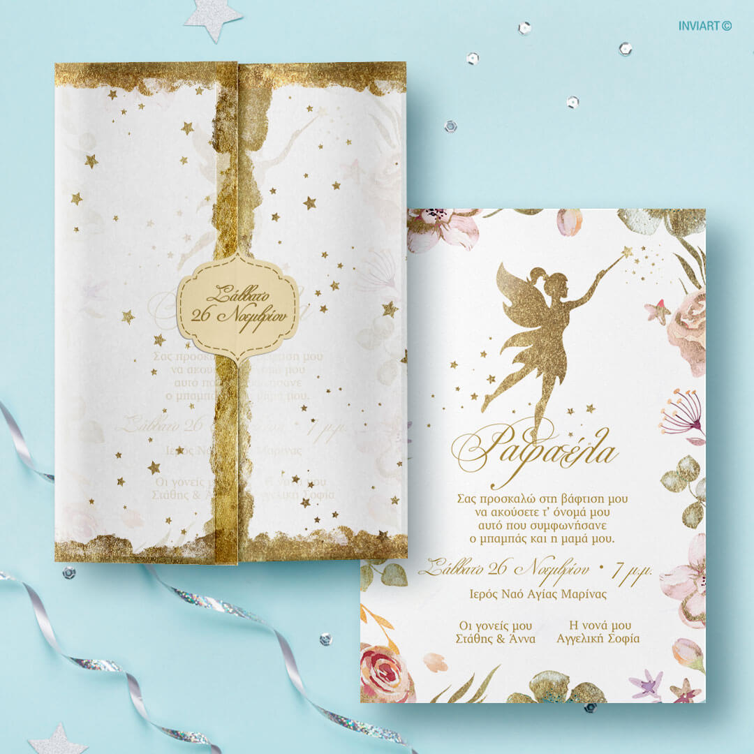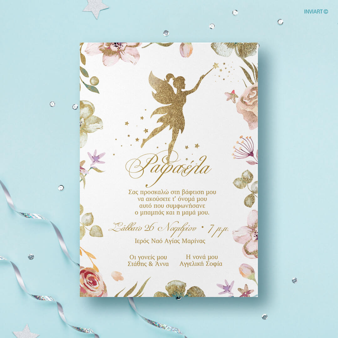 Πρόσκληση βάπτισης με θέμα νεράιδα