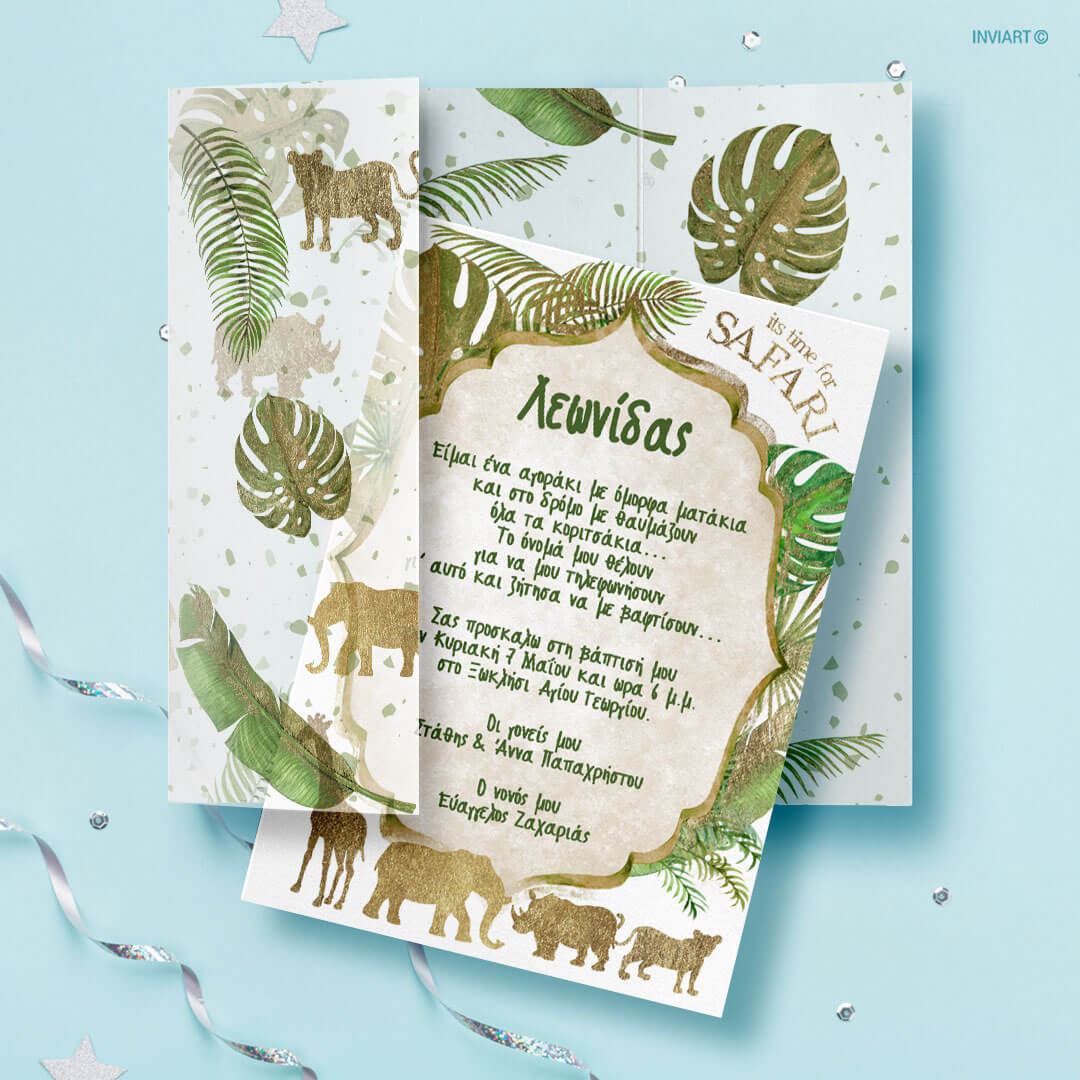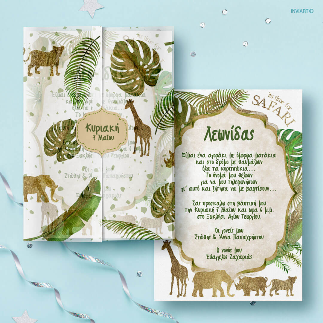 Πρόσκληση βάπτισης με θέμα σαφάρι