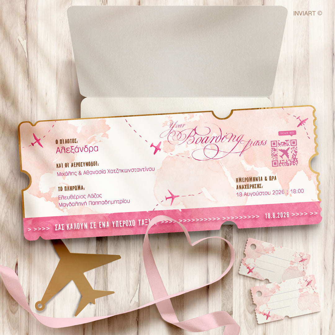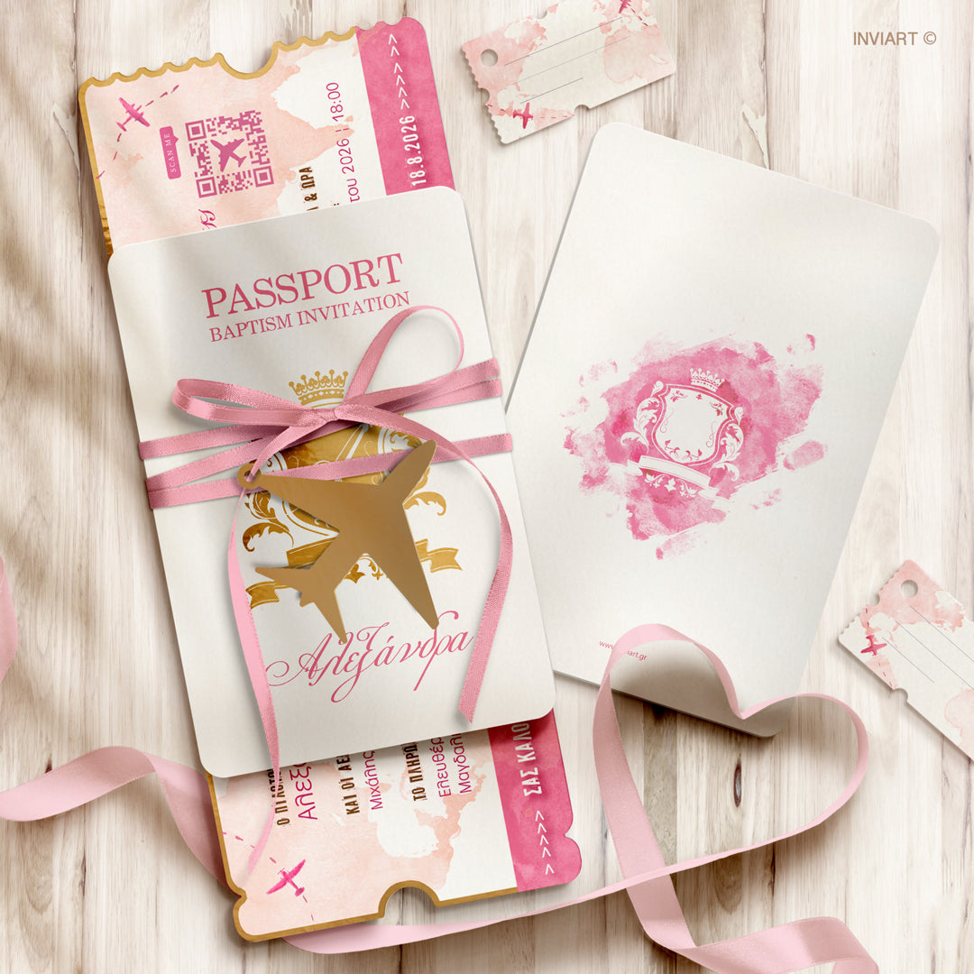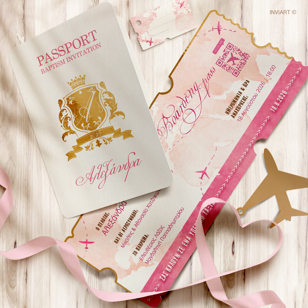 Προσκλητήριο Βάπτισης Passport για Κορίτσι – Boarding Pass με Θέμα Ταξίδι