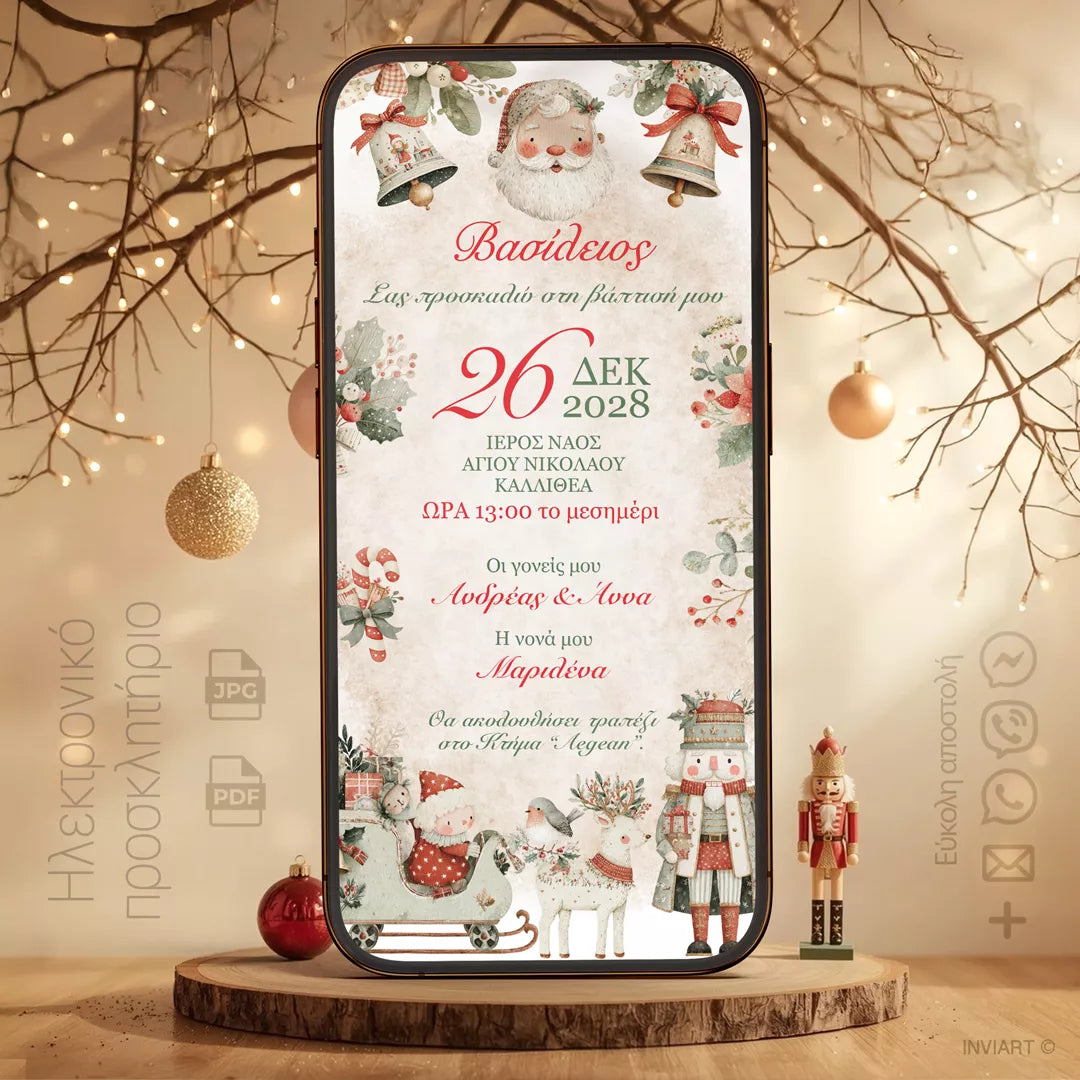 Χριστουγεννιάτικο Προσκλητήριο Βάπτισης με Άγιο Βασίλη