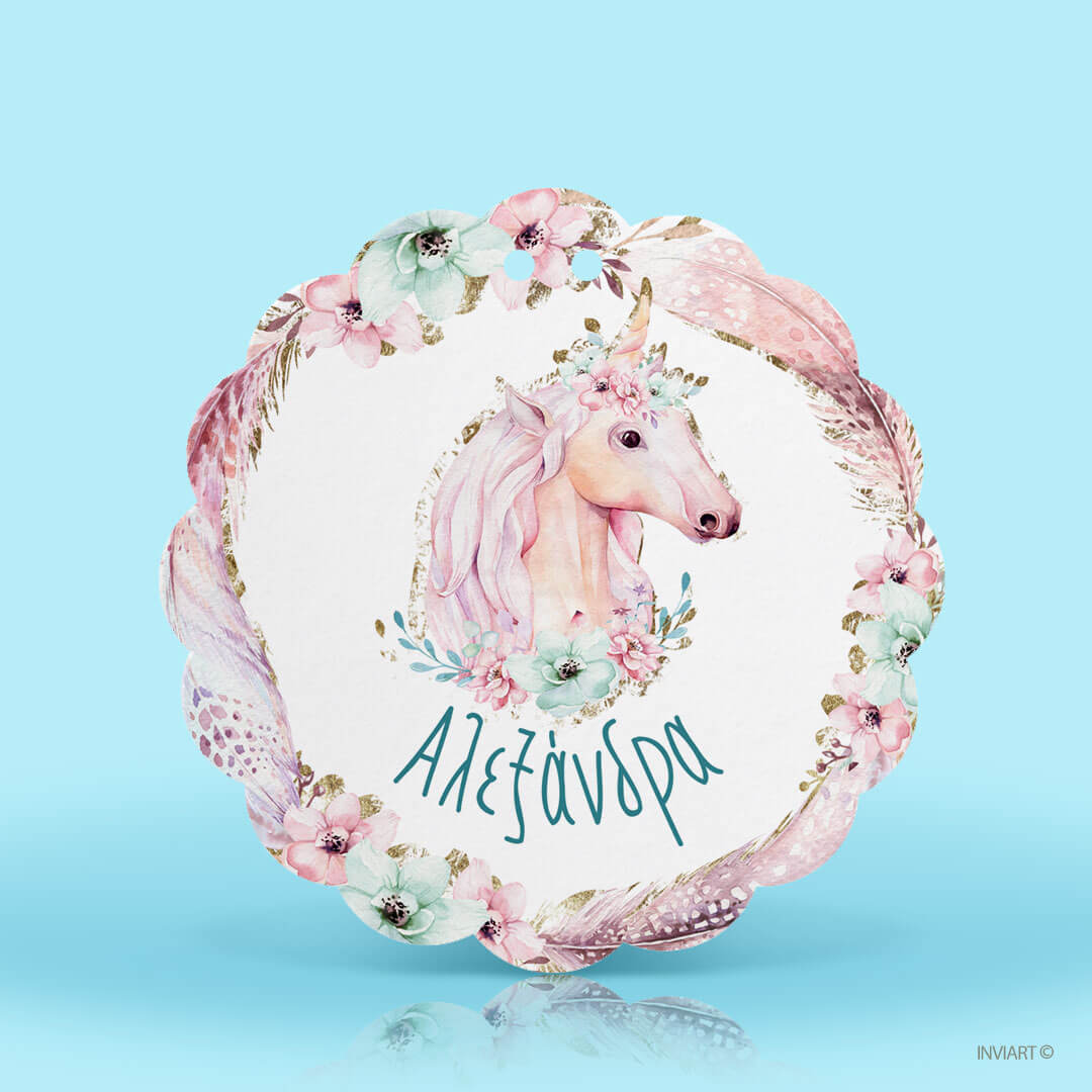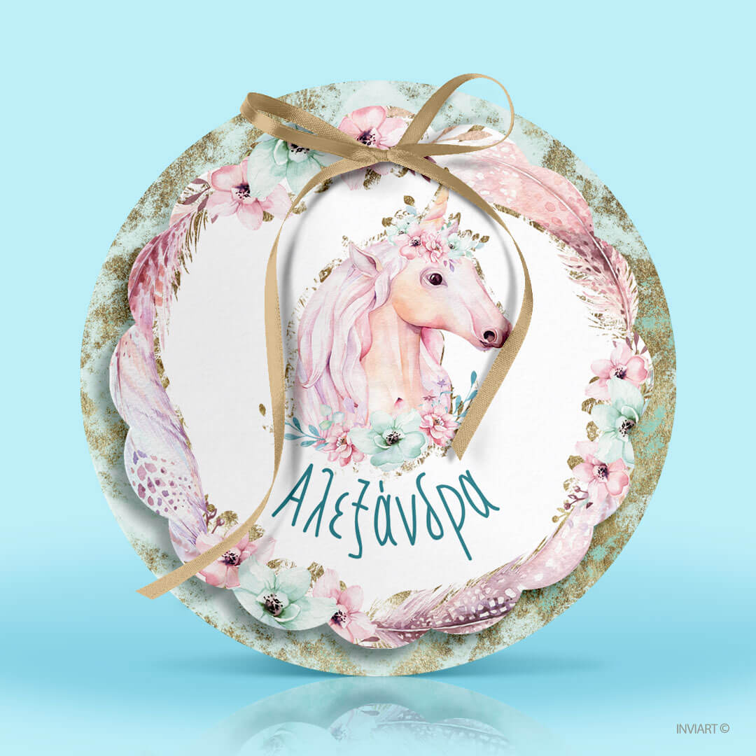 Προσκλητήριο Βάπτισης Μονόκερος για Κορίτσι – Magical Unicorn Boho Style
