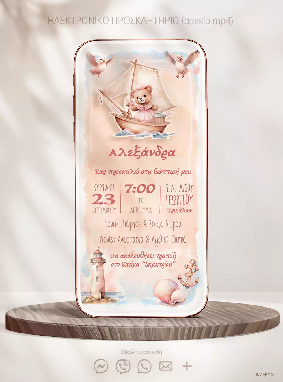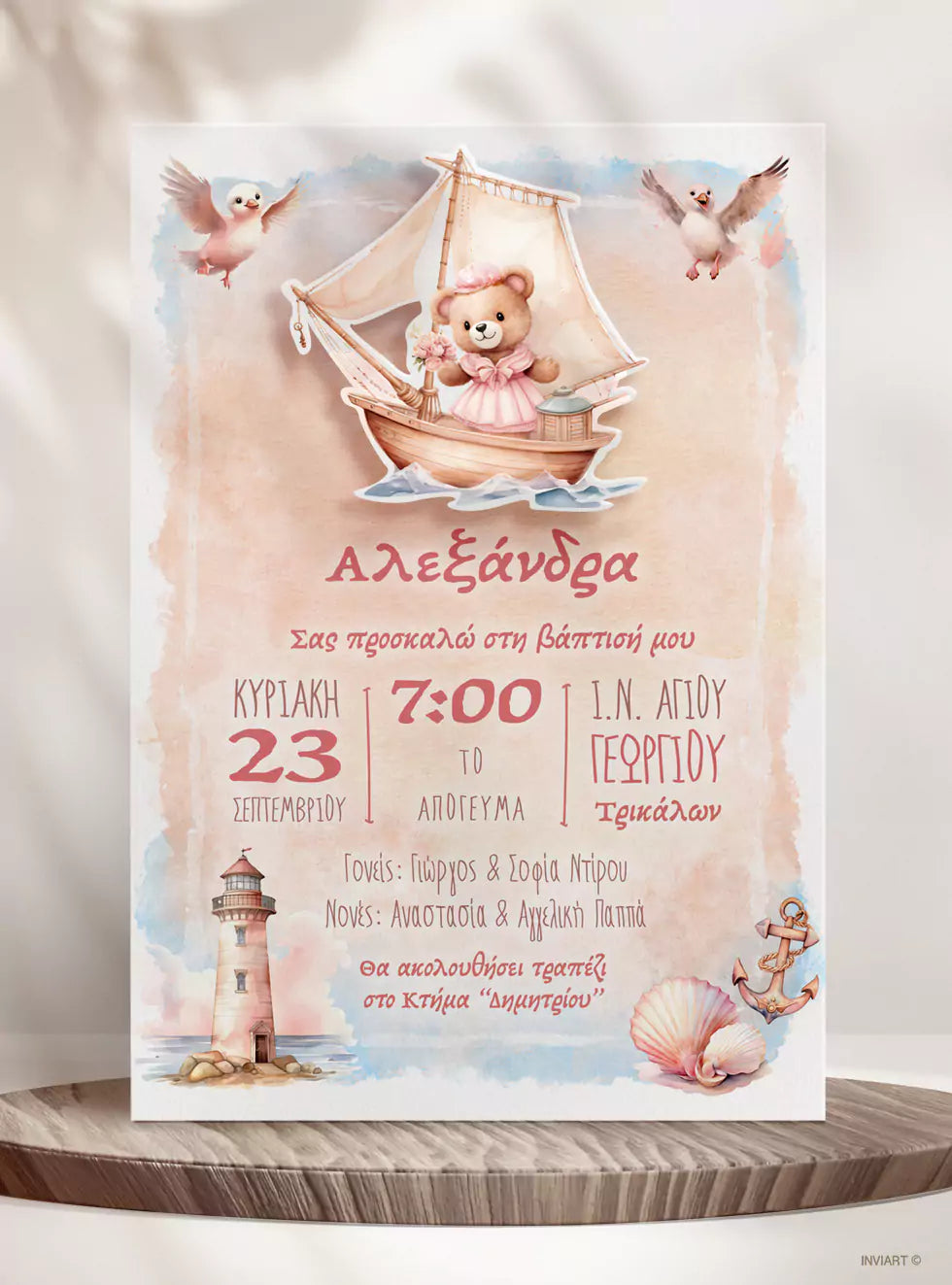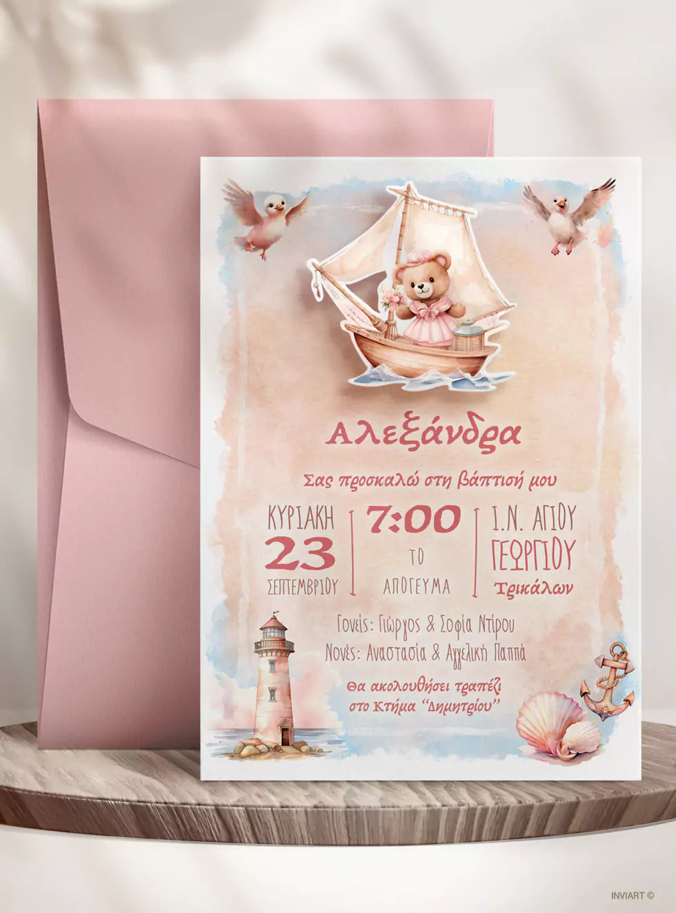 Πρόσκληση βάπτισης Ναυτικό για κορίτσι