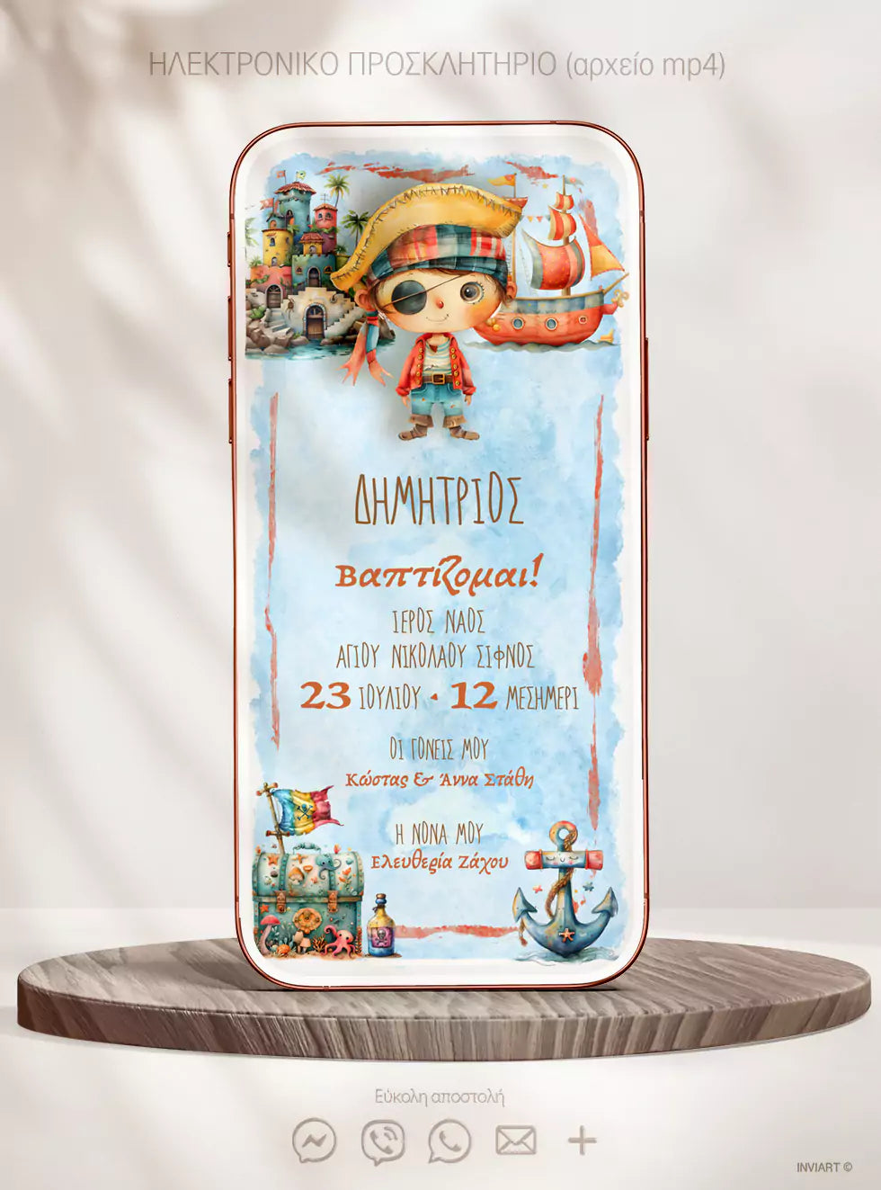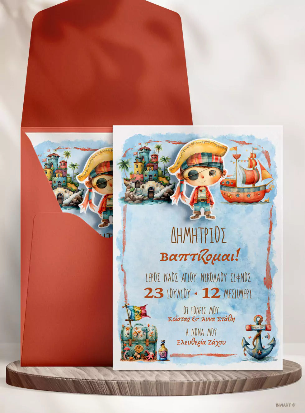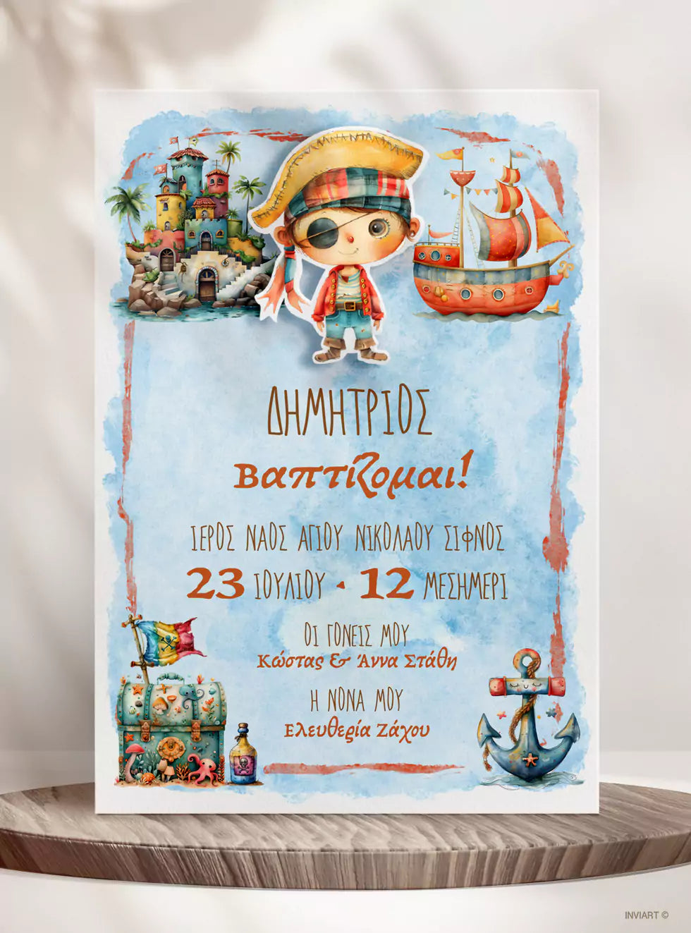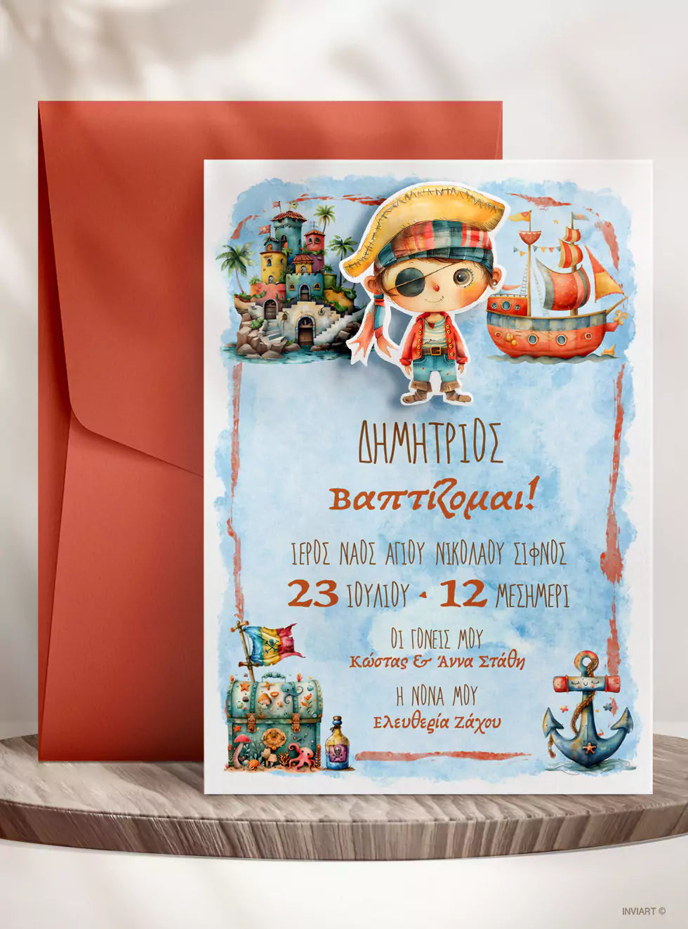 Προσκλητήριο βάπτισης Πειρατής 3D