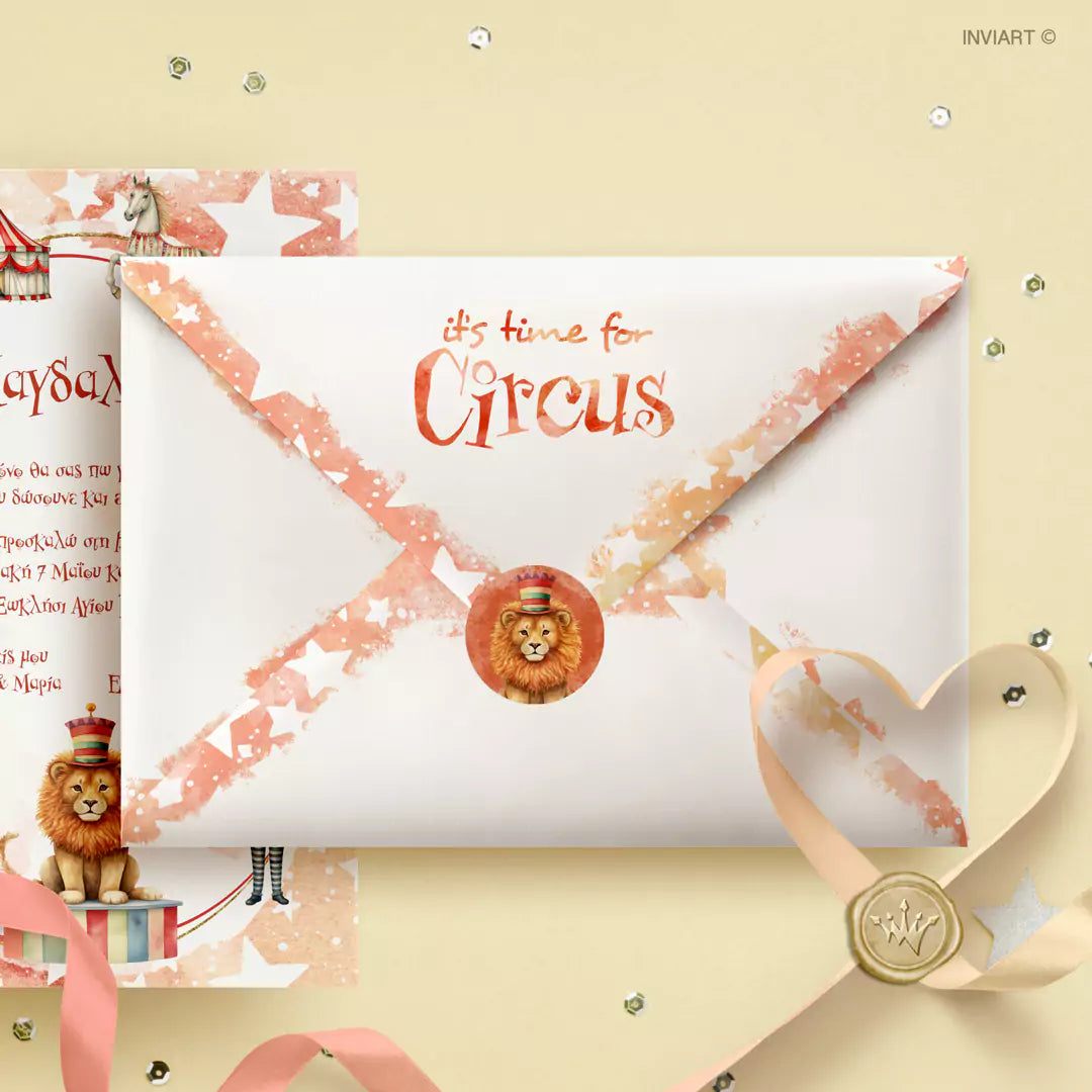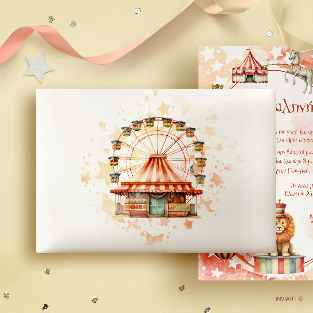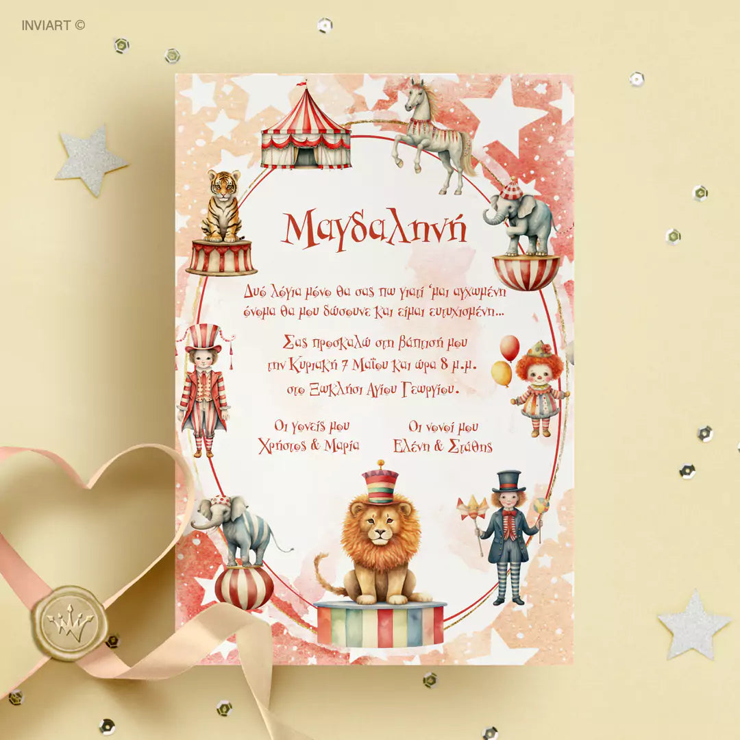 Προσκλητήριο βάπτισης κοριτσιού με θέμα Τσίρκο